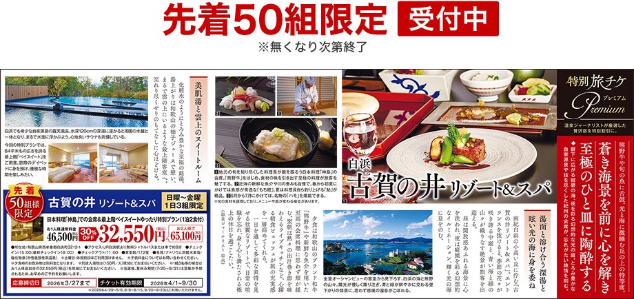 特別割引旅チケットプレミアム「白浜 古賀の井リゾート&スパ」|応募フォーム